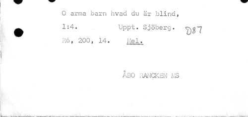 //// O arma barn hvad du är blind, ^ 1-4. Uppt. Sjöberg. //// R6, 200, 14. Mel. //// •MMMnMMMWVH //// ÅBO RANCKEN MS //// __, . »..^rvr,. ---___...___---,--- „,.---___—___.. .. . _ ... ... ...w-, ,. . ^... ___ ___.—t"-. ////