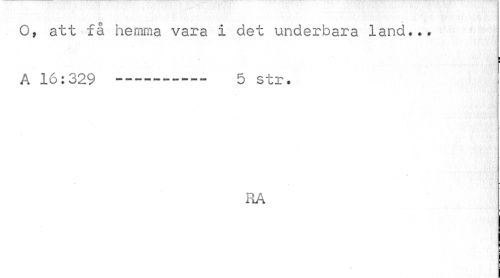 //// O, att få hemma vara I det underbara land... //// ;! //// A 16:329 ... 5 str. //// RA ////