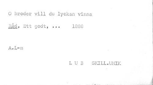//// O broder vill du lyc kan vinna I //// Råd, Ett godt, ... 1888 //// A.L-m //// * //// i //// L U B SKILL.UNIK //// » //// « * JE.a . M ////