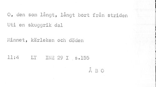 //// I //// O, den som långt, långt bort från striden //// Uti en skuggrik dal , //// j! //// Minnet, kärleken och döden //// i //// i //// 11:4 LT INS 29 I .s.155 //// ÅBO ////