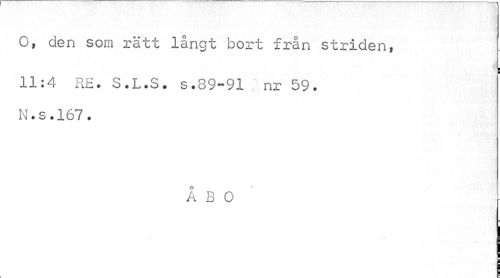 //// O, den som rätt långt bort från striden, //// i //// 11:4 RE. S.L.S. s.39-91 .nr 59. N.s.167. //// O //// A B 0 ////