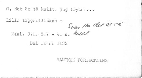 //// I //// O, det är så kallt, jag fryser... Lilla tiggarflickan - . //// ^ //« tås «/ r* //// Ma al. J.H. 5.7 - v. s. ^A-téV //// Del II nr 1123 //// RANCKEN FÖRTECKNING //// , . . . „...^LtiSfcÉ fe^gt., éd //// --^---___ ___A.. . _>. .. . . _ ___, / ////