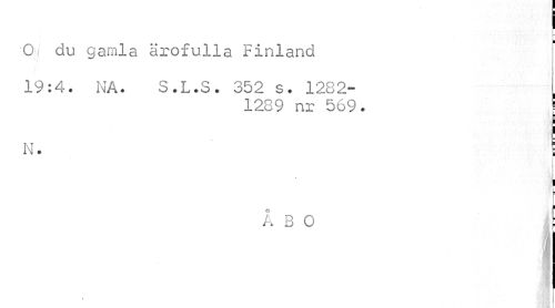 //// i //// O du gamla ärofulla Finland //// 19:4. NA. S.L.S. 352 s. 1282- //// 1289 nr 569. ! //// N. \ //// i //// ¦ //// ° f //// a bo i //// j ////