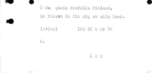//// O du gamla ärofulla Finland, ^^ Du kärast är för mig av alla land. //// l:4(+r) . INE 28 b nr 78 //// N. //// ÅBO ////