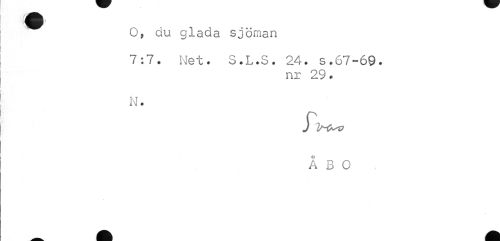 //// O, du glada sjöman //// 7:7. Net. S.L.S. 24. s.67-69. //// nr 29. //// N. //// ÅBO ////