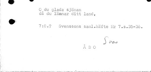 //// Oodu glada sjöman då du lämnar ditt land, //// ^^ 7:8.? Svenssons saml.häfte Nr 7.s.35-36. //// i //// ÅBO //// ¦jfH''" ////