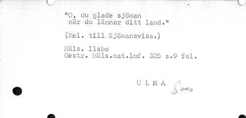 //// ff0, du glade sjöman när du lämnar ditt land.u //// (Mel. till Sjömansvisa.) Häls. Ilsbo //// Ge str. Häls.nat.lmf. 325 s.9 fol. //// U L M A ^ ^ ////