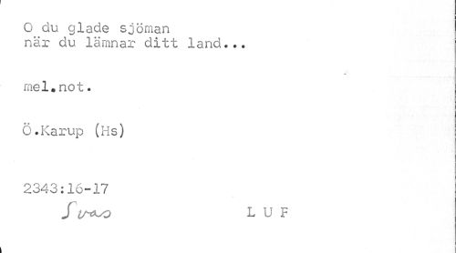 //// O du glade sjöman //// när du lämnar ditt land... //// .i //// mel.not. Ö.Karup (Hs) //// 2343:16-17 //// J ir^o L U F ////