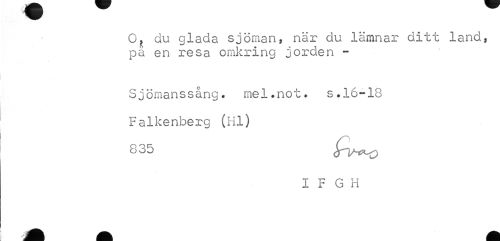 //// O, du glada sjöman, när du lämnar ditt land, på en resa omkring jorden - //// Sjömanssång. mel.not. s.16-18 Falkenberg (Hl) //// I F G H ////