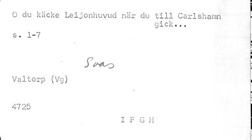 //// I //// O du. käcke Leijonhuvud näx du "till Ceirlshamn r //// gick... //// s. 1-7 //// i //// Valtorp (Vg) i //// v //// 4725 //// I F G H ////