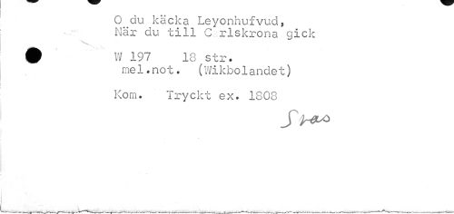 //// O du käcka Leyonhufvud, När du till Carlskrona gick //// 0 W 197 18 str. //// mel.not. (Wikbolandet) //// Kom. Tryckt ex. 1808 ////