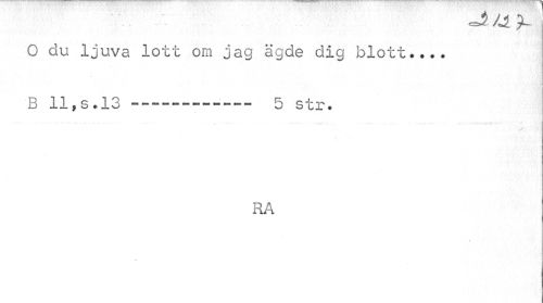//// te , //// O du ljuva lott om jag ägde dig blott... //// i //// B 11 * s .13---;--- 5 str. //// RA //// » ////