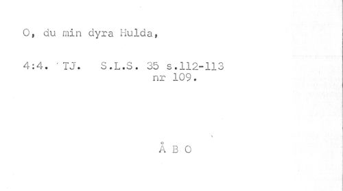 //// O, du min dyra Hulda, //// 4:4. ' TJ. S.L.S. 35 s.112-113 //// nr 109. //// \ //// ÅBO //// \ ////