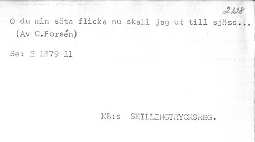 //// Ji m i //// O du min söta flicka nu skall jag ut till sjöss... (Av C.Forsen) • j //// Se: E 1879 11 //// ] I //// KB: s SKILLINGTRYCKSREG. ////