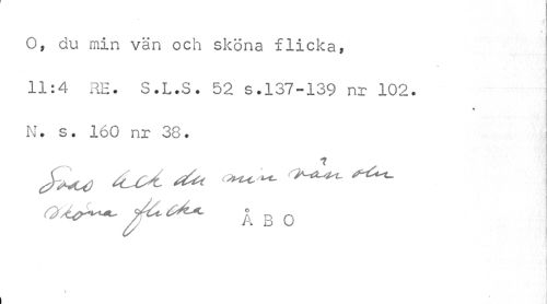 //// •v //// O, du min vän och sköna flicka, 11:4 RE. S.L.S. 52 s.137-139 nr 102. //// % //// N. s. 160 nr 38. //// J^ sLU ^ ' ^ - ^ ! //// jfc ^ Å B O //// 1 ////