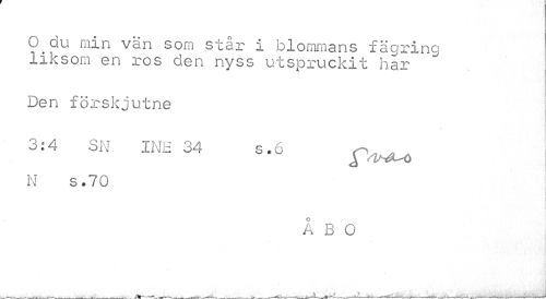 //// C^du min vän som står i blommans fägring liksom en ros den nyss utspruckit har //// Den förskjutne //// A //// 3:4 SN INE 34 s.6 N s. 7 0 //// ÅBO ////