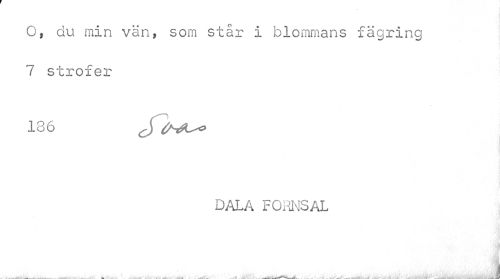 //// O, du min vän, som står i blommans fägring 7 strofer //// 136 6s^» //// dala fornsal //// *. i ////