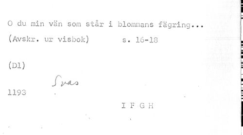 //// I //// O du min vän som står i blommans fägring... (Avskr. ur visbok) s. 16-18 I //// (DI) i //// f^ ! //// 1193 . _ 1 //// I F G H j //// j //// i i ////
