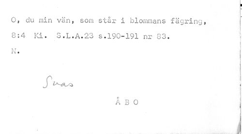 //// I //// l //// O, du min vän, som står i blommans fägring, //// 8:4 Ki. S.L.A.23 s.190-191 nr 83. 1 //// N. //// ÅBO ////