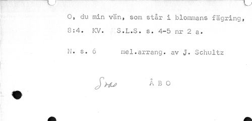 //// O, du. min vän, som står i blommans fägring, 3:4. KV. S.L.S. s. 4-5 nr 2 a. //// N. s. 6 rnel.arrang. av J. Schultz //// J ÅBO ////