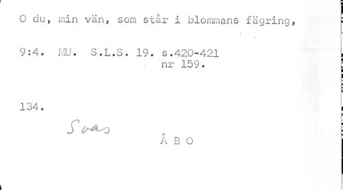 //// ! //// O du, min vän, som står i blommans fägring, : //// • _ //// \ //// 9:4. MU. S.L.S. 19. s.420-421 ¦ //// nr 159. E //// ¦ //// i //// 134. , //// s //// £ is^o . : //// A B O ////
