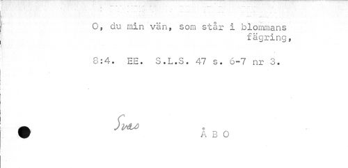 //// % * //// "" ... 4 « //// O, du min vän, som står i blommans //// fägring, //// i //// 8:4. EE. S.L.S. 47 s. 6-7 nr 3. //// 0 ^ £¦ O ////