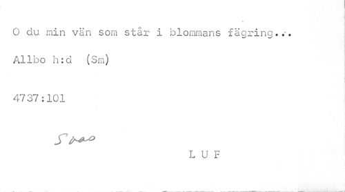 //// • >'1 //// O du min vän som står i blommans fägring».'. Allbo h:d (Sm) //// 4737:101 //// LUF ////
