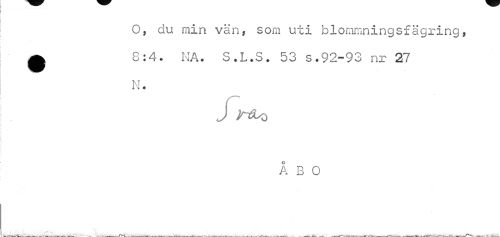 //// O, du min vän, som uti blommningsfägring, £ 8:4. NA. S.L.S. 53 s.92-93 nr 27 //// N. //// J //// k B O ////
