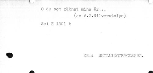 //// O du som räknat mina år... //// (av Å.G.Silverstolpe) //// Se i E 1801 t //// ^ KB:s SKILLINGTRYCKSREG. ////