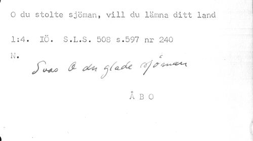 //// O du stolte sjöman» vill du lämna ditt land 1:4. Iö. S.L.S. 508 s.597 nr 240 //// ÅBO //// il //// »N. //// V //// » ////
