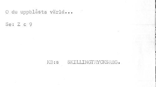 //// 1 //// O du uppblåsta värld... //// Se: Z c 9 //// | i //// KB:s SKILLINGTRYCKSREG. i //// \ ////