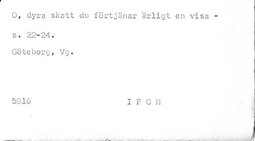 //// O, dyra skatt du förtjänar ärligt en visa - //// s. 22-24. Göteborg, Vg. //// 5816 IF G H //// ) //// : ////
