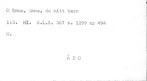 //// O Emma, Emma, du mitt barn //// • v //// V. //// 1:3. Hl. S.L.S. 367 s. 1299 nr 494 N. //// ÅBO //// / ////