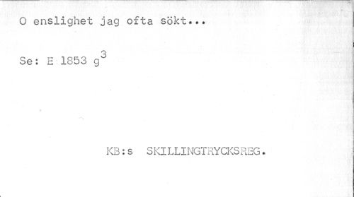 //// O enslighet jag ofta sökt... Se: E 1853 g3 //// KB:s SKILLINGTRYCKSREG. ////