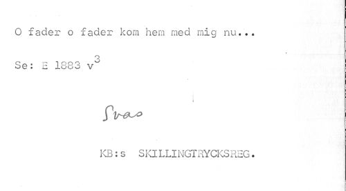 //// O fader o fader kom hem med mig nu... //// ¦ //// Se: E 1883 //// i //// jt //// KB:s SKlLLINGTRYCKSREG. ////