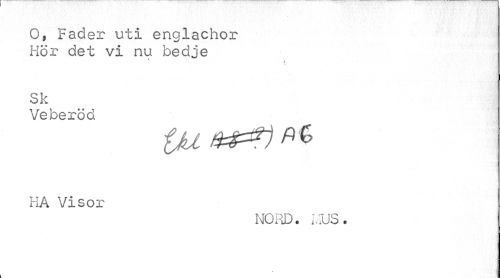 //// O, Fader uti englachor Hör det vi nu bedje //// i //// Sk //// Veberöd //// fjafcp&l^ //// HA Visor //// NORD. i,DS. ////