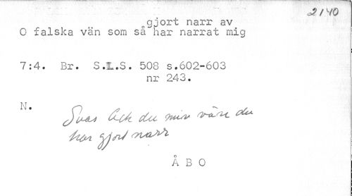 //// £ t HO //// mgjort narr av 0 falska vän som så har narrat mig //// 7:4. Br. S.L.S. 508 s.602-603 //// nr 243. //// N • /O - //// cCu ^^ ^ //// -fa* yj^J O^tlMl //// ÅBO ////