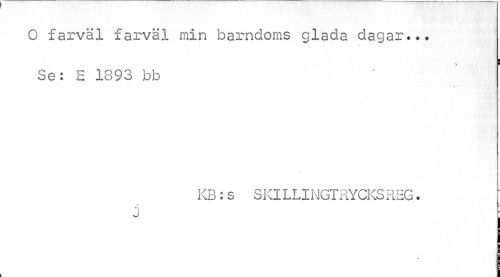 //// O farväl farväl min barndoms glada dagar... //// ¦ //// Se: E 1893 bb ¦ //// KB:s SKILLINGTRYCKSREG. //// •t- L //// —i //// j : ////