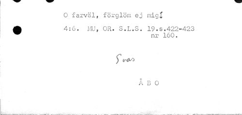 //// O farväl, förglöm ej migi //// m 4:6. MU, OR. S.L.S. 19.s.422-423 //// nr 160. //// ÅBO //// " • . v,"'.' ////