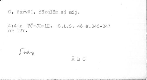 //// O, farväl, förglöm ej mig. //// 4:4-kl- FÖ-JO-LE. S.L.S. 46 s.346-347 nr 127. //// i //// J //// ÅBO //// ... . . a ___-__---._.. ., . • _ . ---... L» - ___.v.-^.. .-w^-. - _ -r-r . _ A___r»-___-___--W^X ////