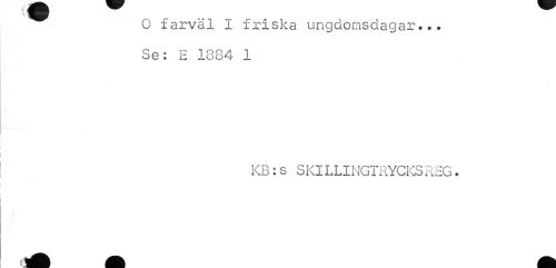 //// O farväl I friska ungdomsdagar... Se: E 1884 1 //// KB:s SKILLINGTRYCKSREG. //// j . I ////