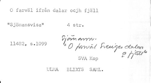 //// O farväl ifrån dalar ocjh fjäll ; //// "Sjömansvisa" 4 str. ! //// . : . ! I //// 482, s.1099 .1- Q Fi&xJjt* CtsUs^n //// SVA Kop *" // //// i i //// ULMA BLIXTS SAML. ////