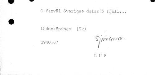 //// O farväl Sveriges dalario fjäll... //// Löddeköpinge (Sk) //// 2940:67 VJ/T^Mr/V //// i //// L U F //// i ////