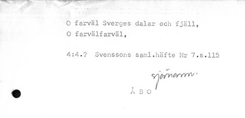 //// • ... //// •a //// O farväl Sverges dalar och fjäll, //// O farvälfarväl, //// t -• //// 4:4.? Svenssons sami.häfte Nr 7.S.115 //// i ////