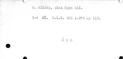 //// O. flicka, dina ögon blå. //// 3:4 KÖ. S.L.S. 333 s.273 nr 113. //// ÅBO ////