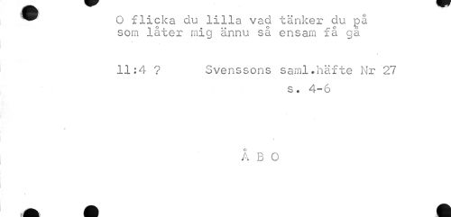 //// ^ O flicka du lilla vad tänker du gå //// som låter mig ännu så ensam få ga //// % //// 11:4 ? Svenssons saml.häfte Nr 27 //// s. 4-6 //// t //// O //// A B O //// Mm fl I ////