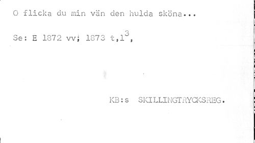 //// O flicka clu min vän den hulda sköna... | //// - //// Se: e 1872 vv; 1873 t,l°, //// I //// I ¦ //// i //// KB:s SKIlliNGTRYCKSREG. ! //// i ¦ ////