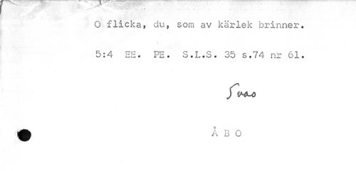 //// -• • • - ¦ //// U . ^ - - . - - v //// '-.".*'• - v'.' V « //// O flicka, du, som av kärlek brinner. //// i //// 5:4 EE. PE. S.L.S. 35 s.74 nr 61. //// V ////