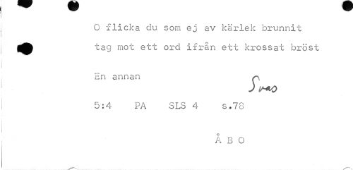 //// O flicka du som ej av kärlek brunnit tag mot ett ord ifrån ett krossat bröst //// En annan p //// ) f+O //// 5:4 PA SLS 4 s.78 //// ÅBO ////
