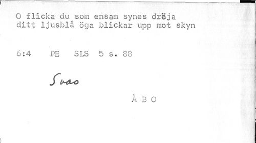 //// O flicka du som ensam synes dröja ditt ljusblå öga blickar upp mot skyn //// 6:4 PE SLS 5 s. 88 //// J^täUö //// ÅBO ////